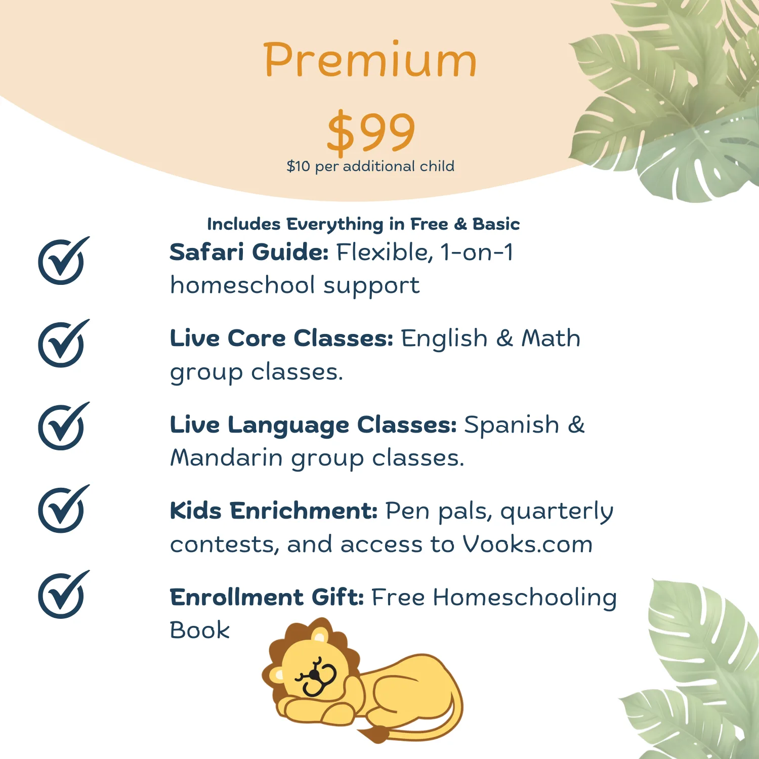 We offer a discounted Premium Plan rate for additional children to make our program more affordable for families. Please select this option only if your first child is already enrolled in the Premium Plan. This is an add-on package for families with multiple children.