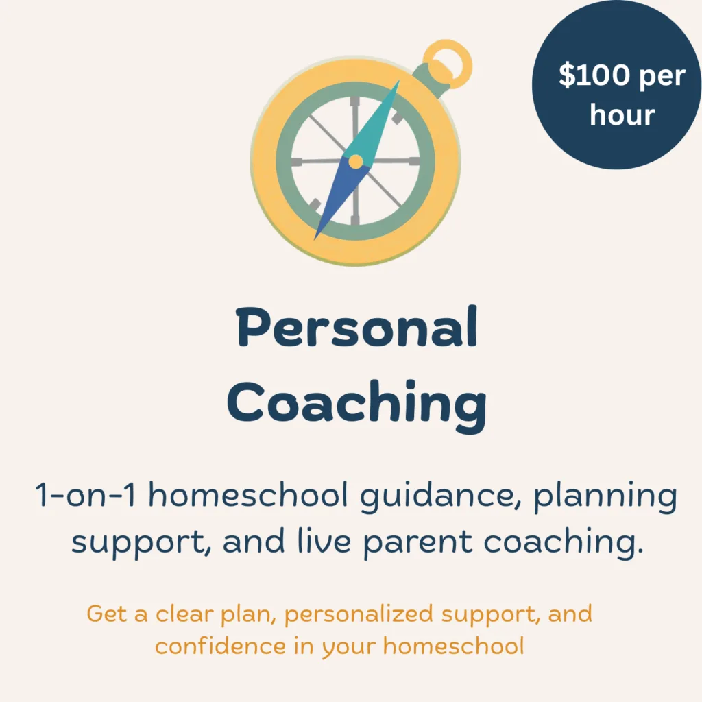 Book a 1-hour session with a homeschool coach for $100 or start with our prerecorded coaching see options under self paced parent classes.