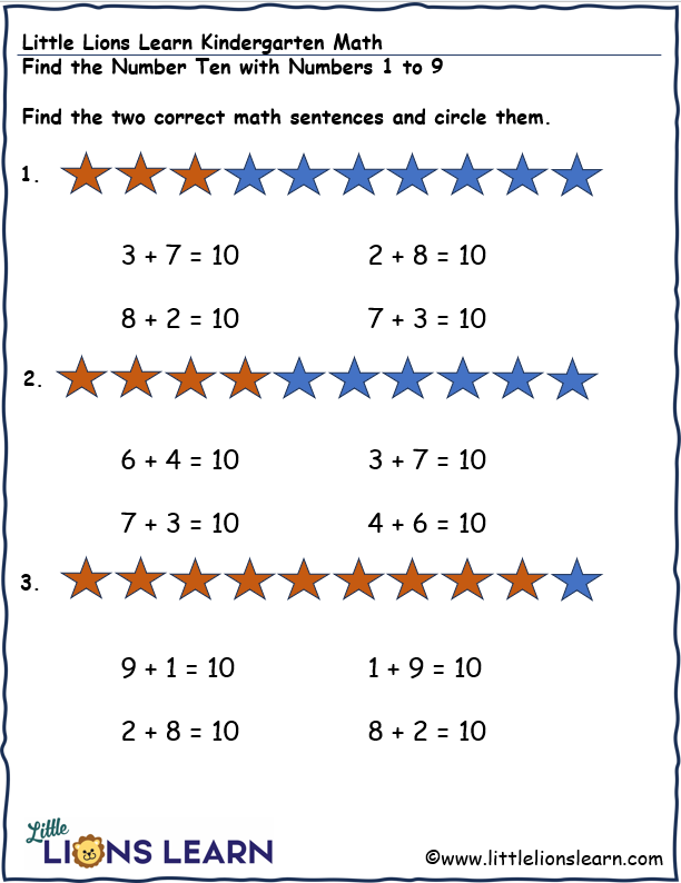K.OA.A.4 Find the number ten from any number 1 to 9.
